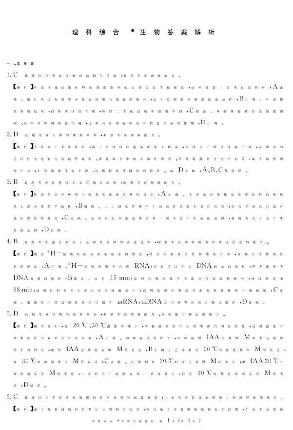 四川省资阳市高中2024届高三第二次诊断性考试生物答案