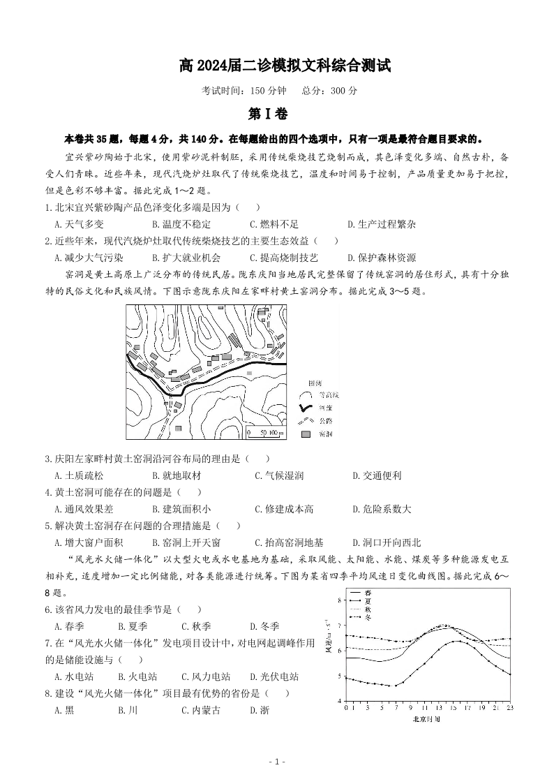 四川省成都市第七中学2024届高三下学期二诊模拟考试文综