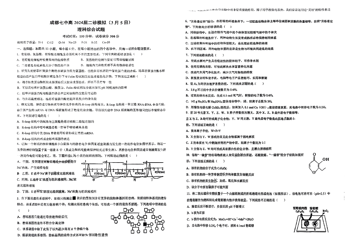 四川省成都市第七中学2024届高三下学期二诊模拟考试理综