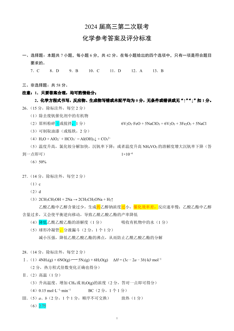 四川省成都市蓉城联盟2024届高三下学期第二次联考化学答案
