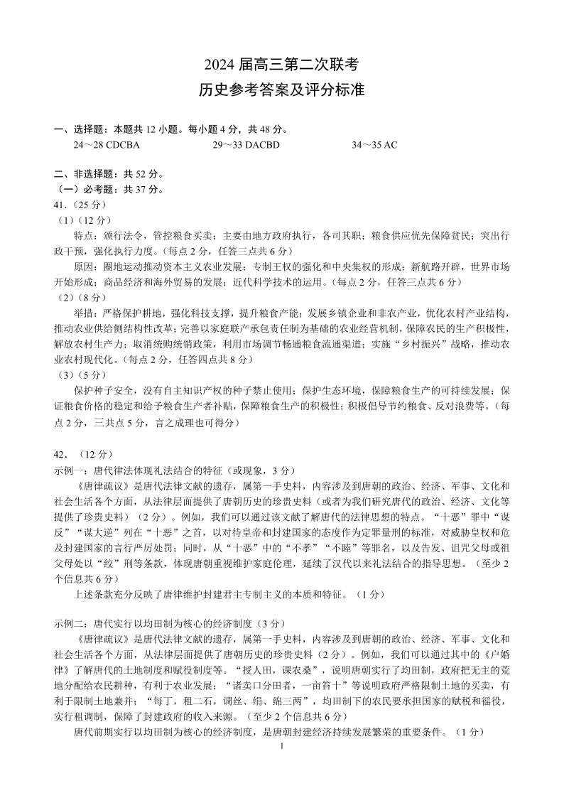 四川省成都市蓉城联盟2024届高三下学期第二次联考历史答案