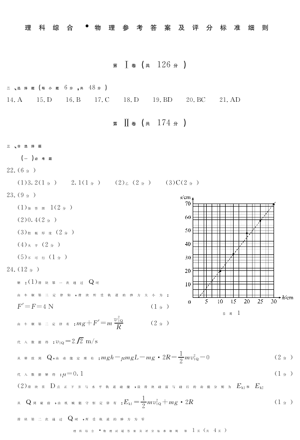 四川省九市(广安、眉山、遂宁、雅安、资阳、乐山、广元、自贡、内江)2024届第二次诊断考试物理答案