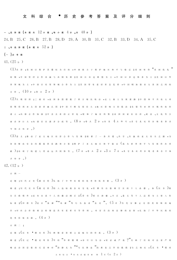 四川省九市(广安、眉山、遂宁、雅安、资阳、乐山、广元、自贡、内江)2024届第二次诊断考试历史答案