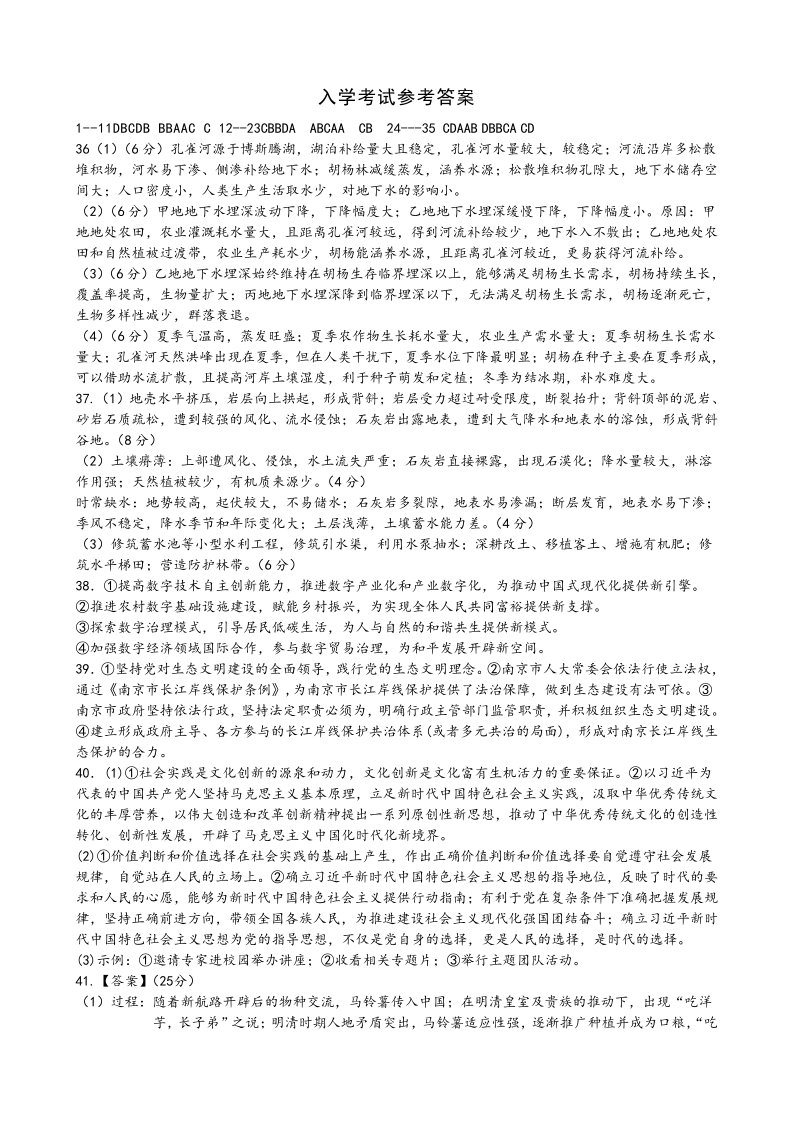 四川省绵阳南山中学2024届高三下学期入学考试文综答案