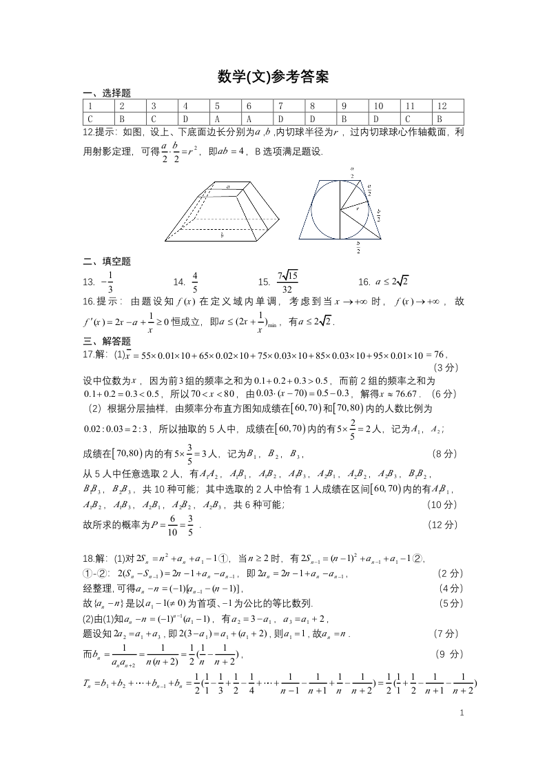四川省成都市第七中学2024届高三下学期热身考试文科数学答案