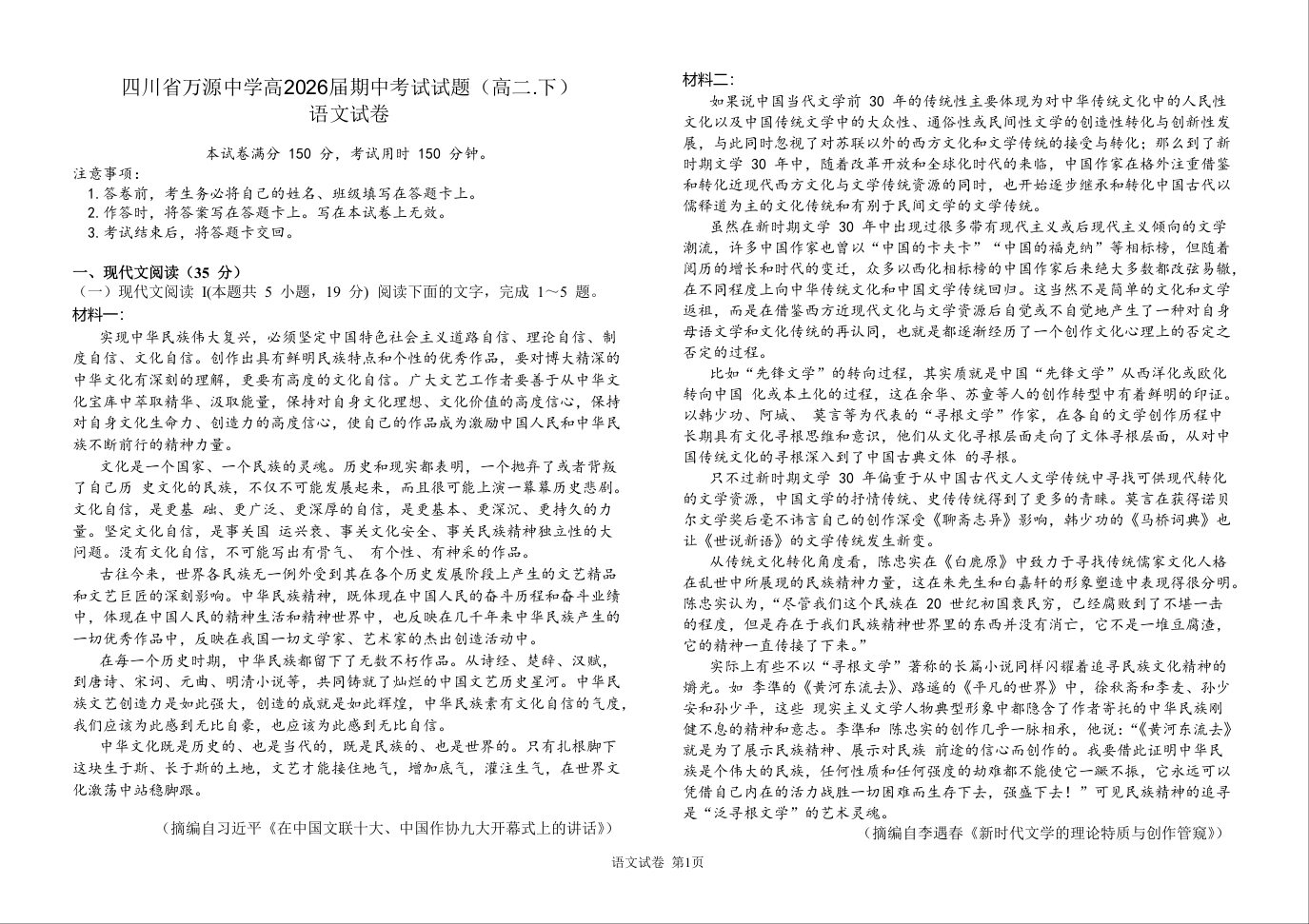 四川省达州市万源中学2024-2025学年下学期高二期中考试语文