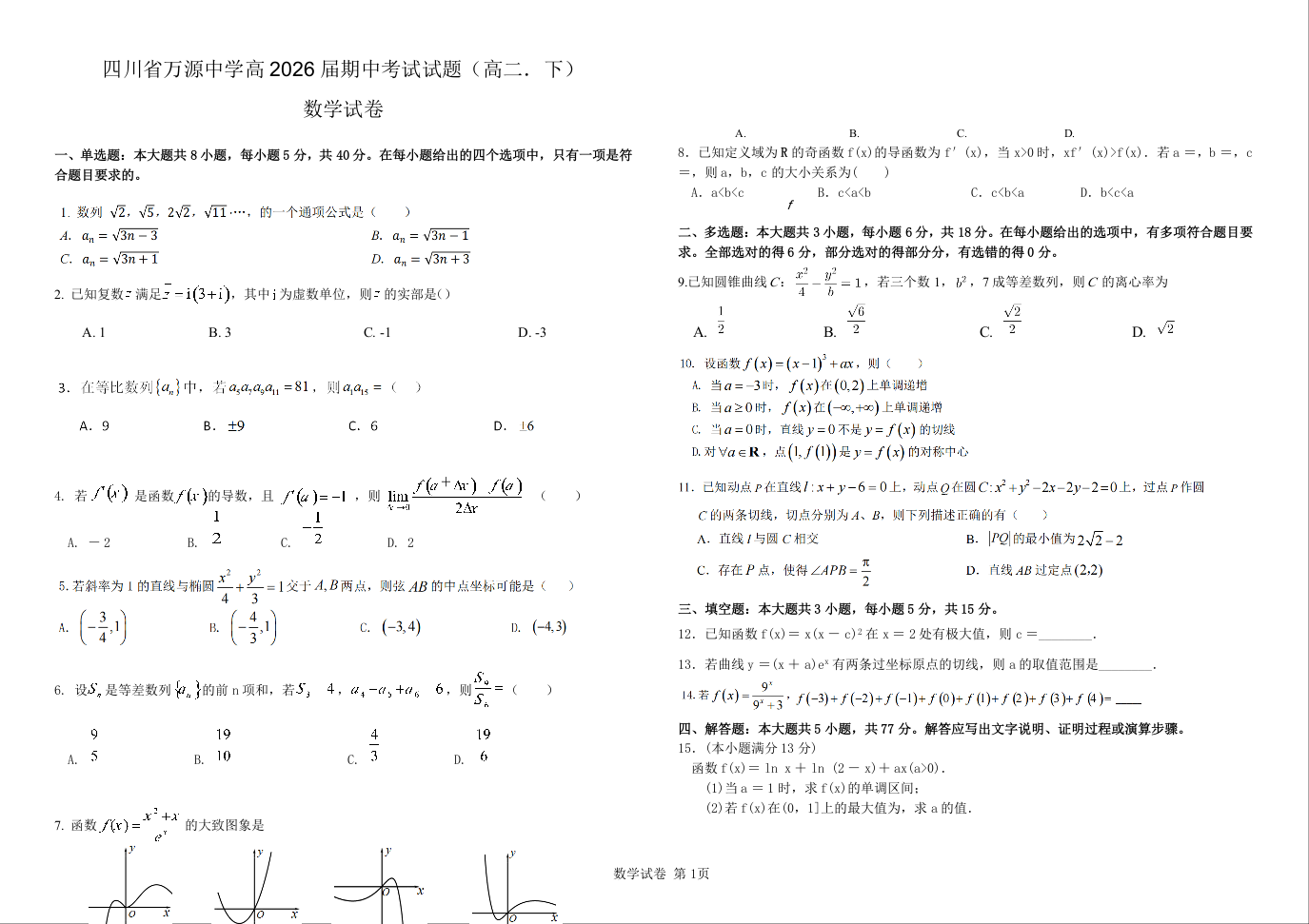 四川省达州市万源中学2024-2025学年下学期高二期中考试数学