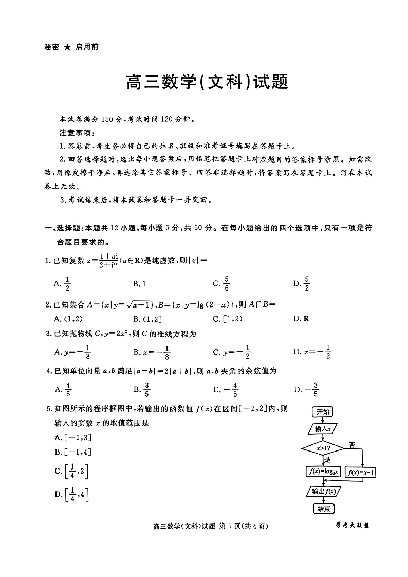 四川省2024届学考大联盟高三年级下学期第三次模拟联考(学考三模)文科数学