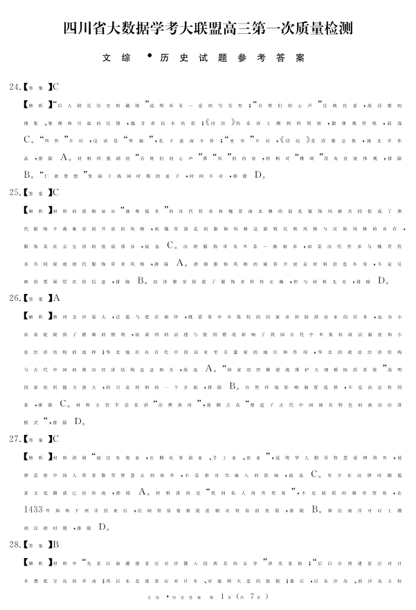 四川省2024届学考大联盟高三年级下学期第三次模拟联考(学考三模)历史答案