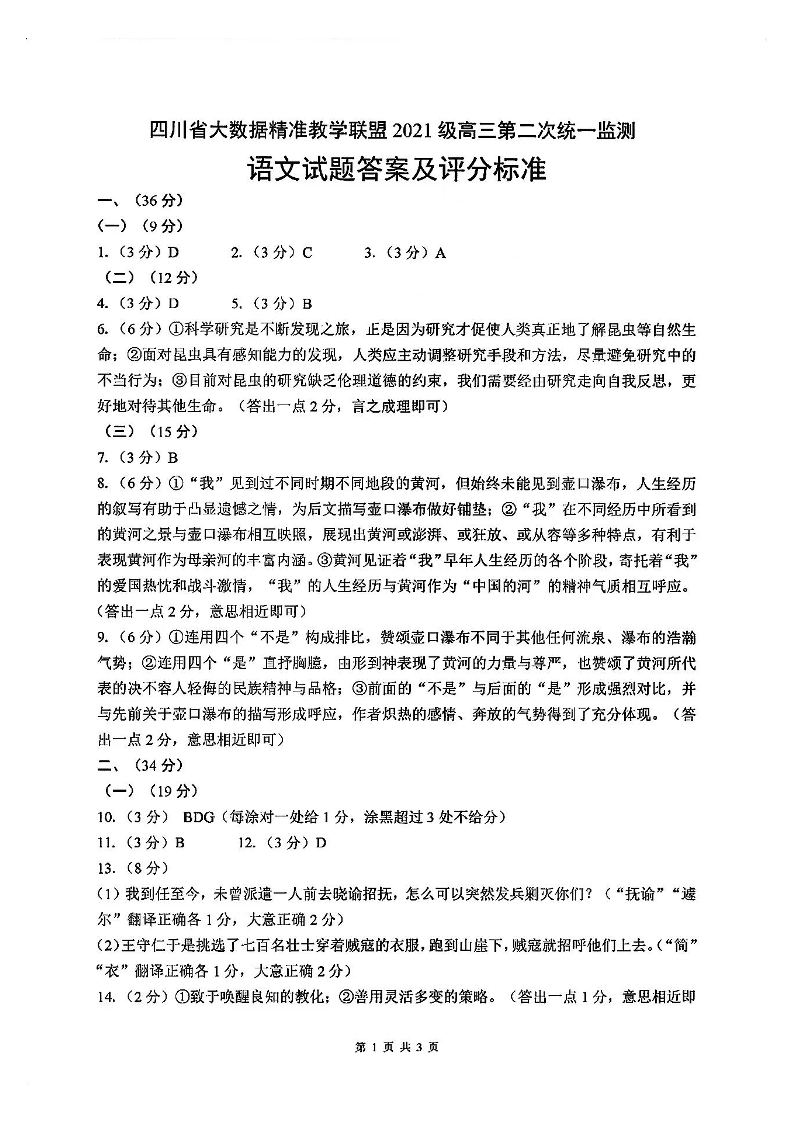 四川省大数据精准教学联盟2021级(2024届)高三年级第二次统一监测(大数据二统)语文答案