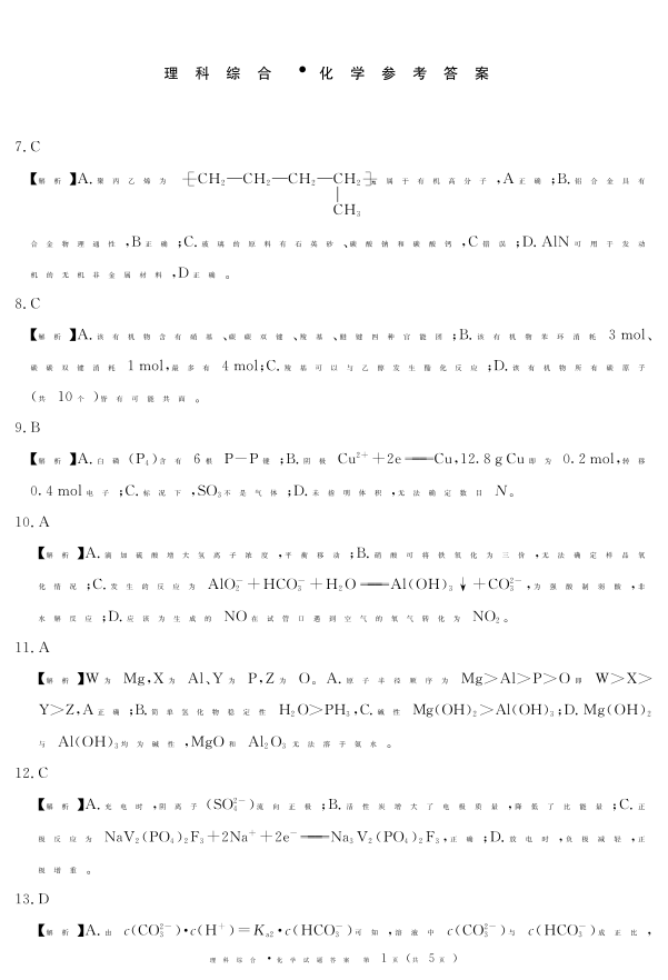 四川省眉山市2024届高三下学期第三次诊断考试化学答案