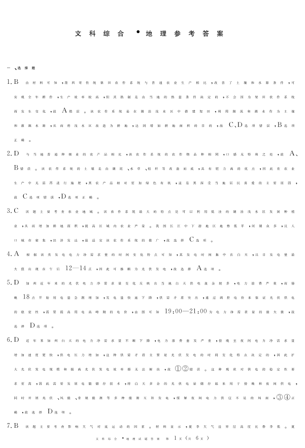 四川省眉山市2024届高三下学期第三次诊断考试地理答案