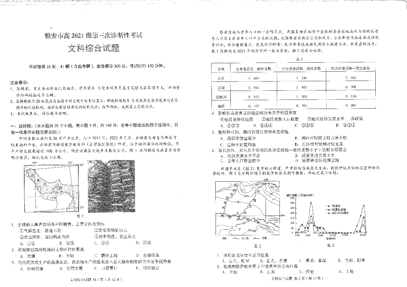 四川省雅安市2024届高三下学期第三次诊断性考试文综