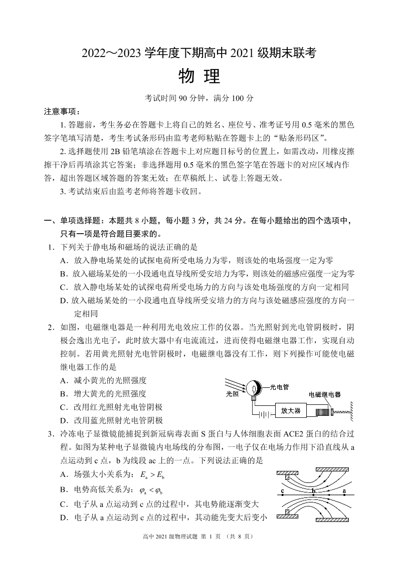 四川省成都市蓉城联盟2024届下学期期末联考物理