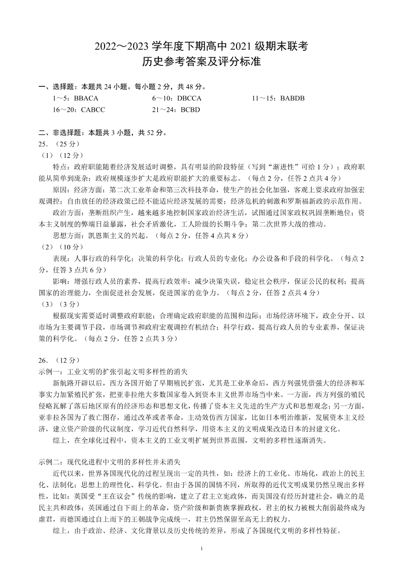 四川省成都市蓉城联盟2024届下学期期末联考历史答案