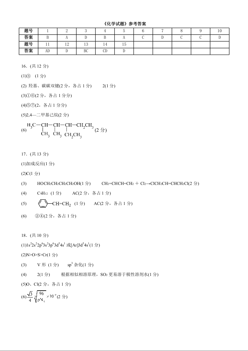 山东省邹城市兖矿第一中学2024-2025学年下学期3月高二月考化学答案