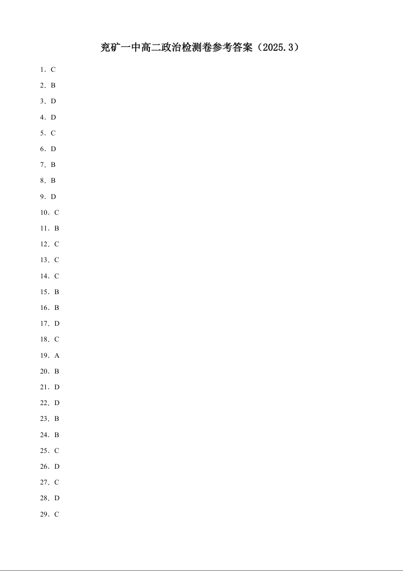 山东省邹城市兖矿第一中学2024-2025学年下学期3月高二月考政治答案