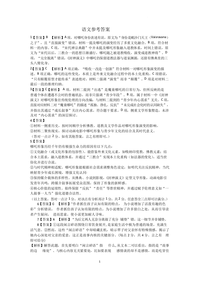 安徽省阜阳市、亳州市部分学校2024-2025学年下学期3月高二月考语文答案