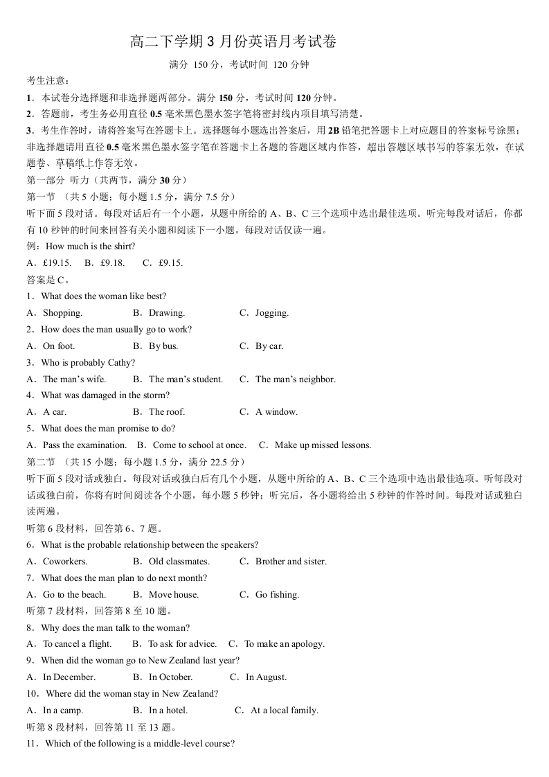 安徽省阜阳市、亳州市部分学校2024-2025学年下学期3月高二月考英语+答案
