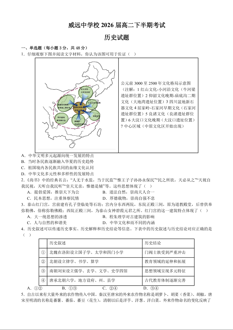 四川省内江市威远中学2024-2025学年下学期高二期中考试历史+答案