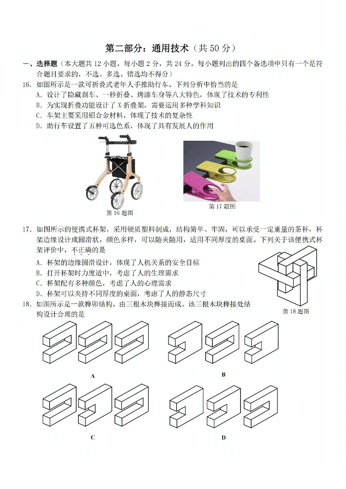浙江省A9协作体2024-2025学年下学期4月高二期中联考通用技术+答案