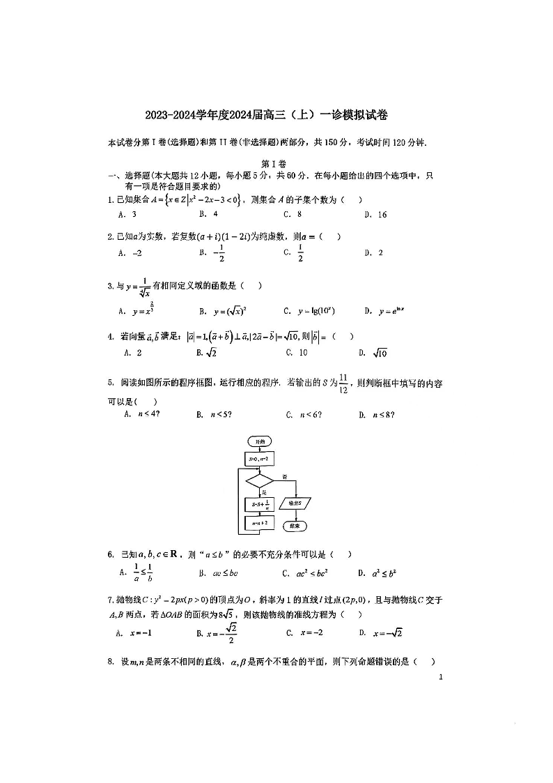 四川省成都市第七中学2024届高三上学期一诊模拟考试理科数学