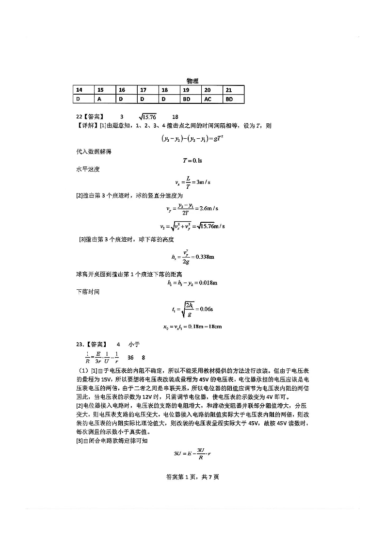四川省成都市第七中学2024届高三上学期一诊模拟考试理综答案