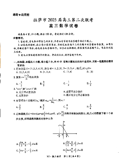 西藏拉萨市2024-2025学年下学期高三第二次模拟数学
