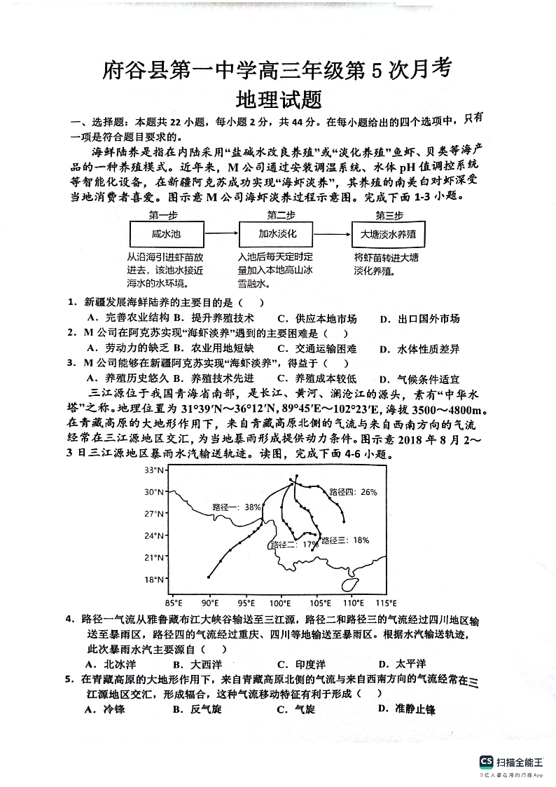 陕西省榆林市府谷县第一中学2023-2024学年高三上学期12月月考 地理