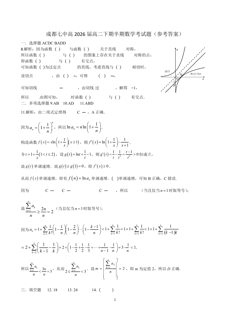四川省成都市第七中学2024-2025学年下期高二半期考试数学答案