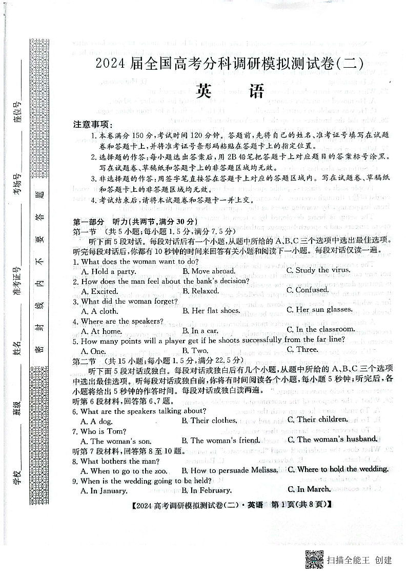 陕西省咸阳市部分高中2024届高三调研模拟测试(二)英语