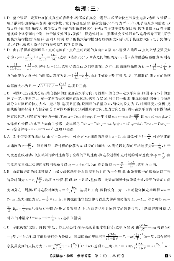 陕西省咸阳市部分高中2024届高三调研模拟测试(三)物理答案