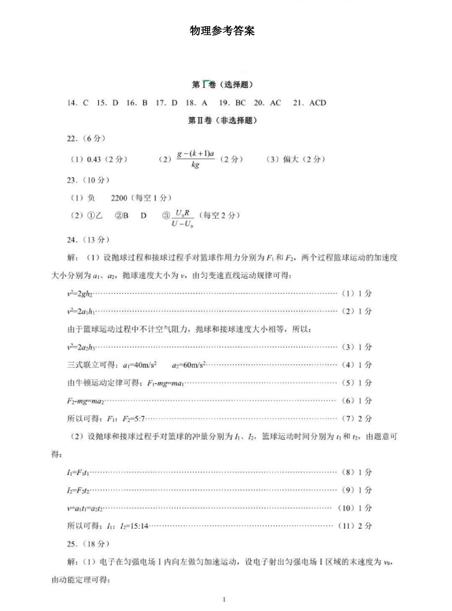 陕西省宝鸡市2024届高三下学期高考模拟检测(二)理科综合答案