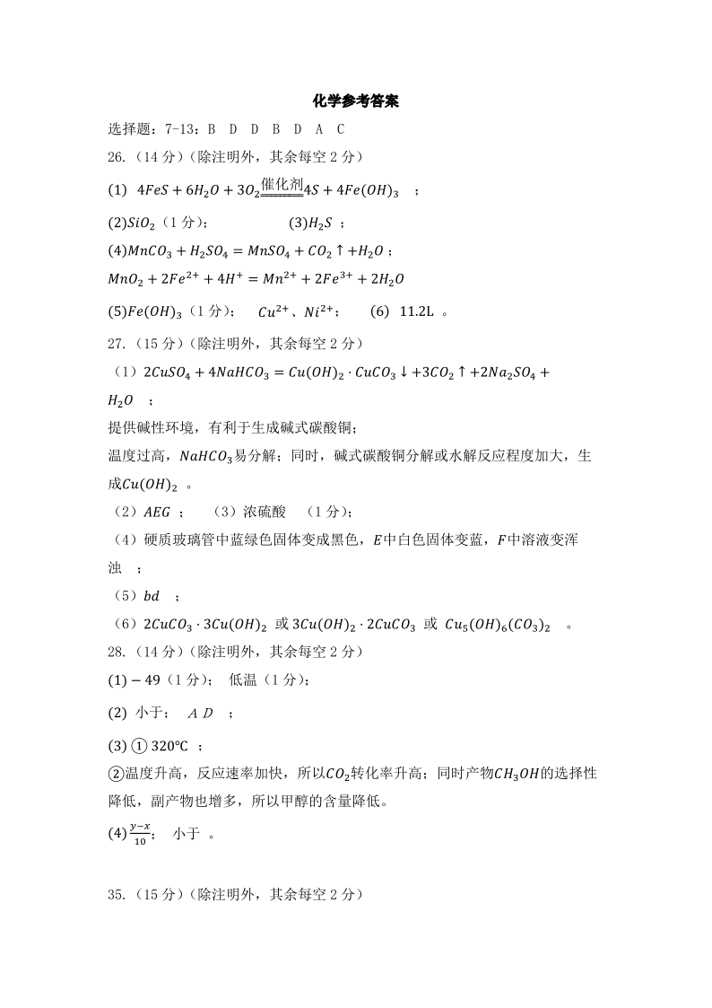 陕西省西安中学2024届高三模拟考试(一)化学答案