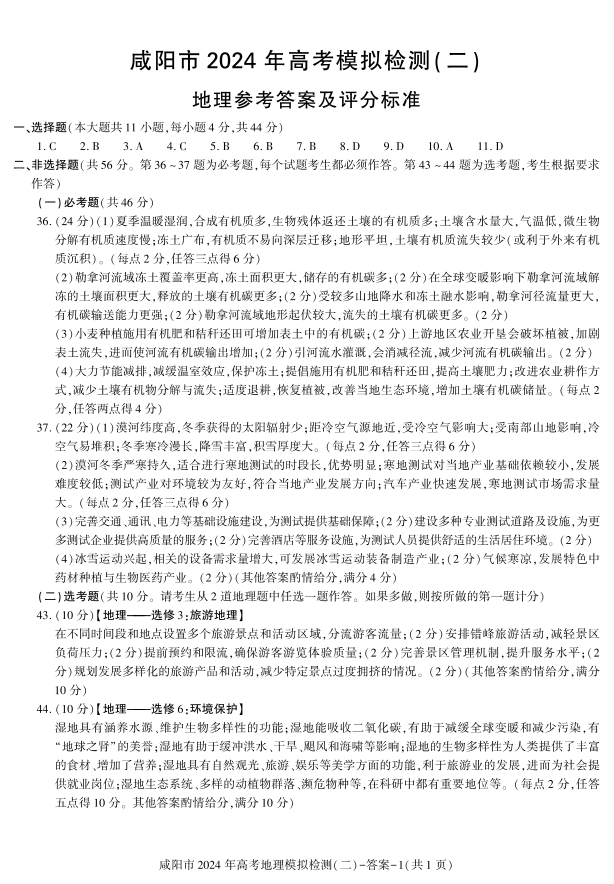 陕西省咸阳市2024届高三下学期高考模拟检测(二模)文科综合答案