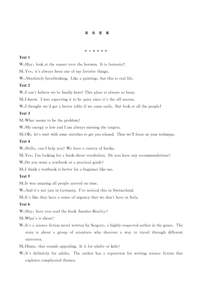 陕西省2024届高三下学期教学质量检测(二)英语答案