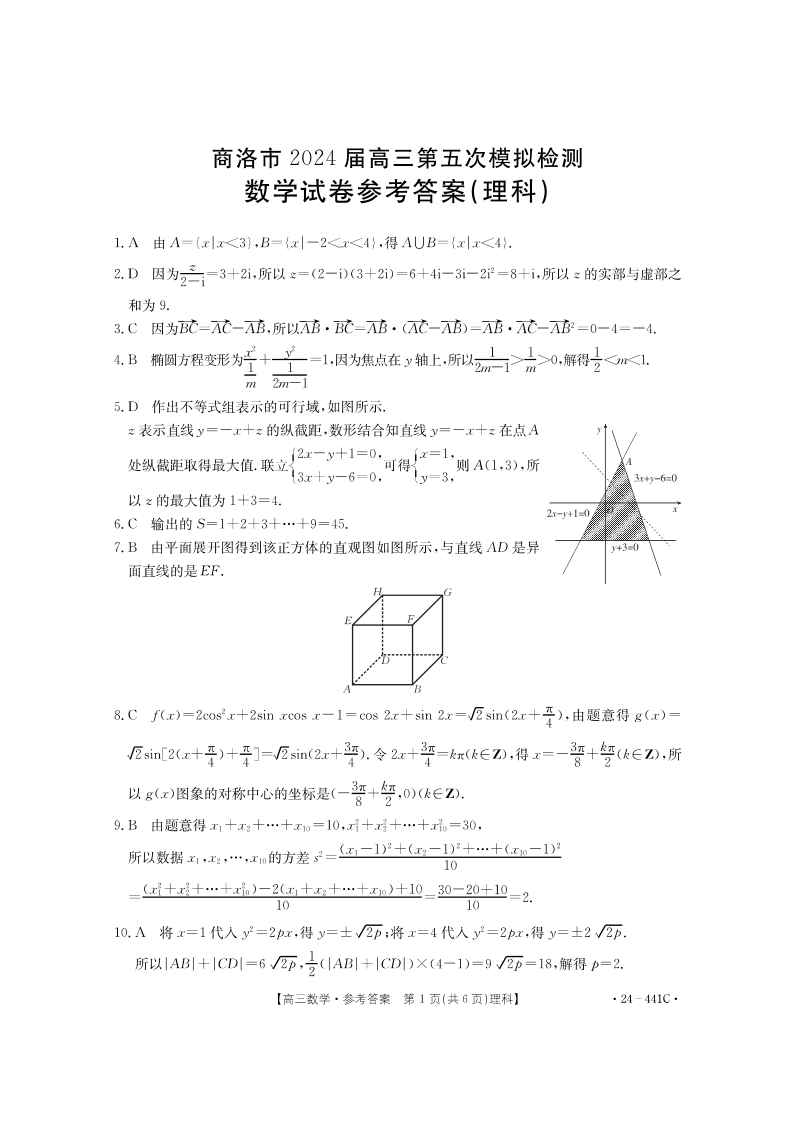 陕西省商洛市2024届高三第五次模拟预测理科数学答案