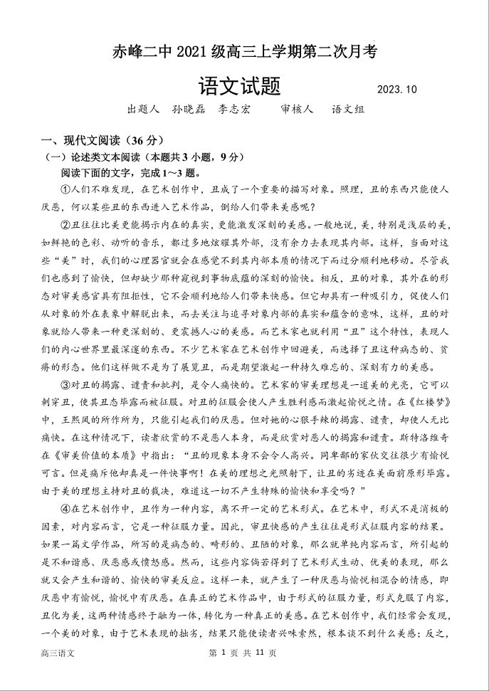 内蒙古赤峰二中2023-2024学年高三上学期10月月考语文