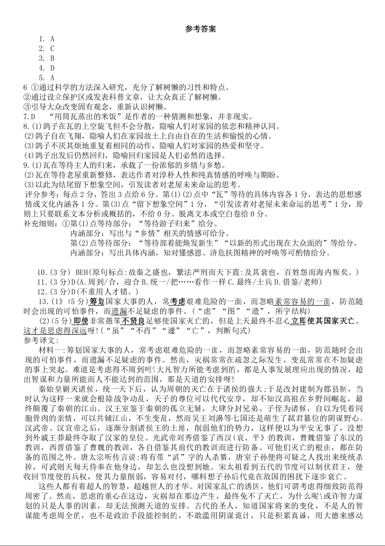 内蒙古赤峰二中2023-2024学年高三上学期第三次月考 语文答案