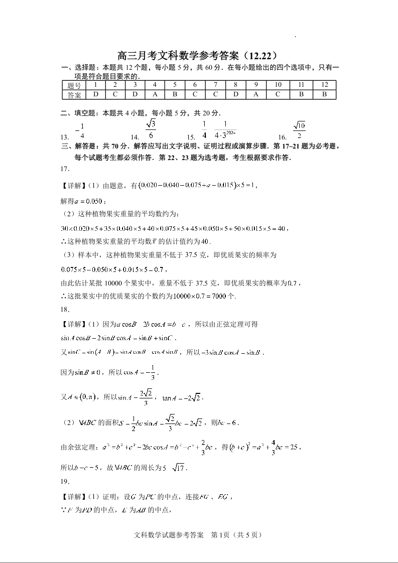 内蒙古赤峰二中2023-2024学年高三上学期第四次月考数学(文)答案