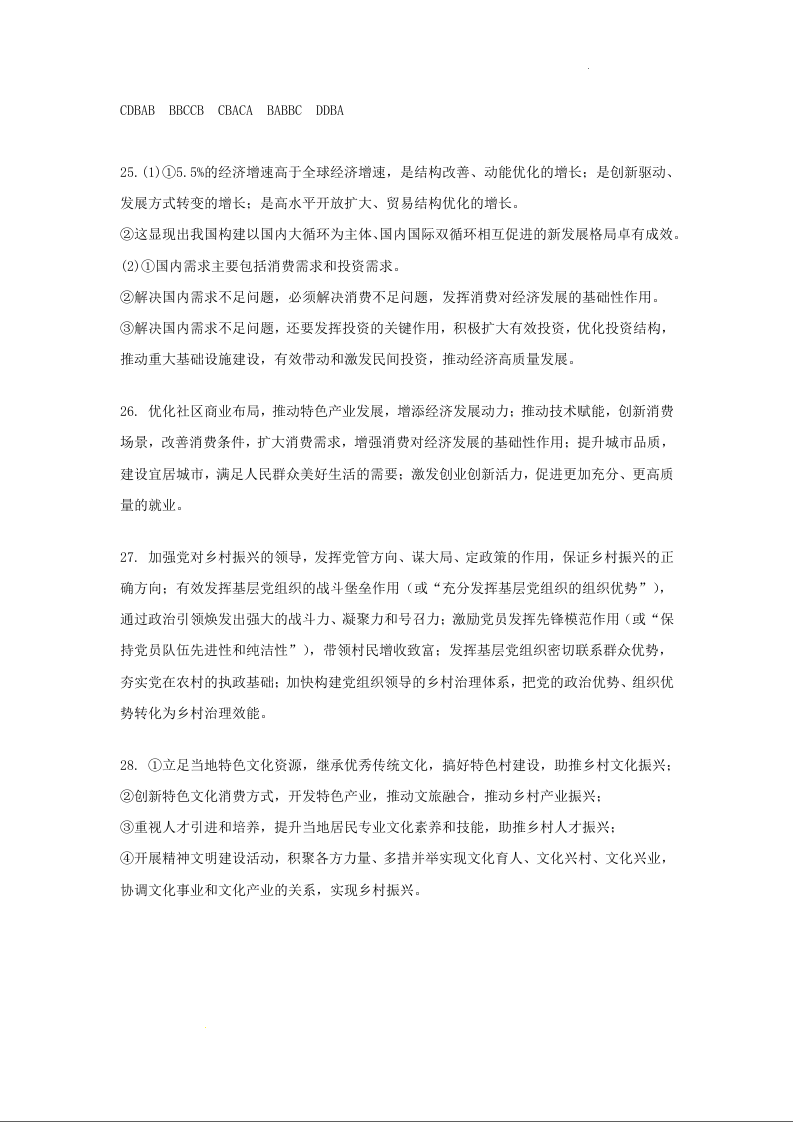 内蒙古赤峰二中2023-2024学年高三上学期第四次月考政治答案