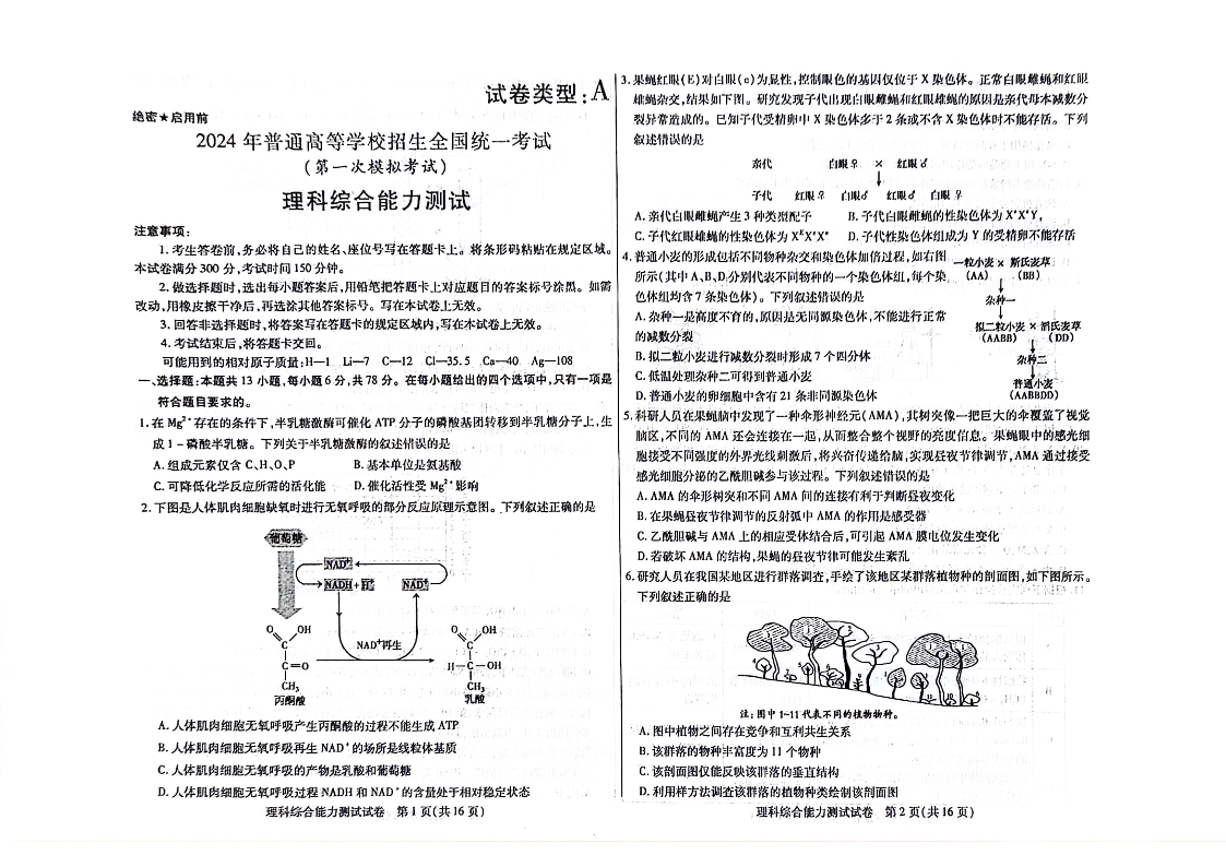 2024届内蒙古自治区包头市高三下学期一模理科综合