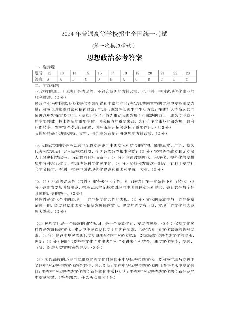 2024届内蒙古自治区包头市高三下学期一模政治答案