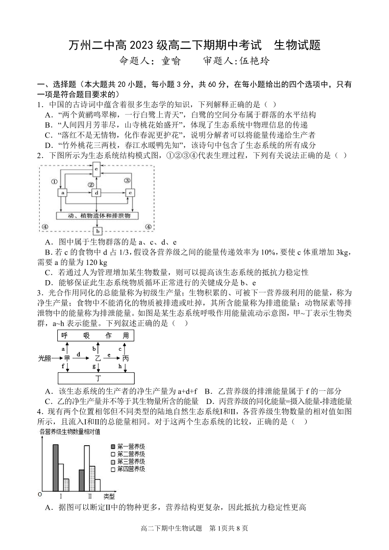重庆市万州二中2024-2025学年下学期高二期中考试生物