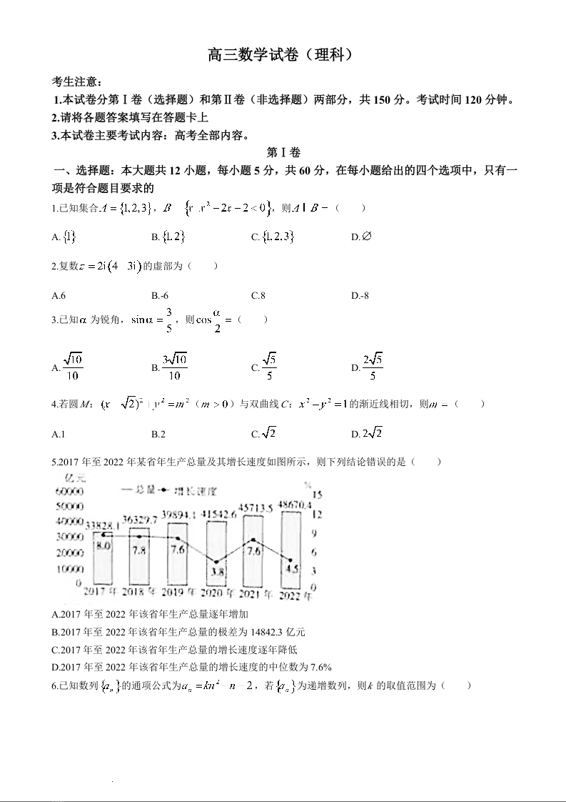 青海省2024届高三下学期金太阳4月联考(同心圆)理科数学+答案