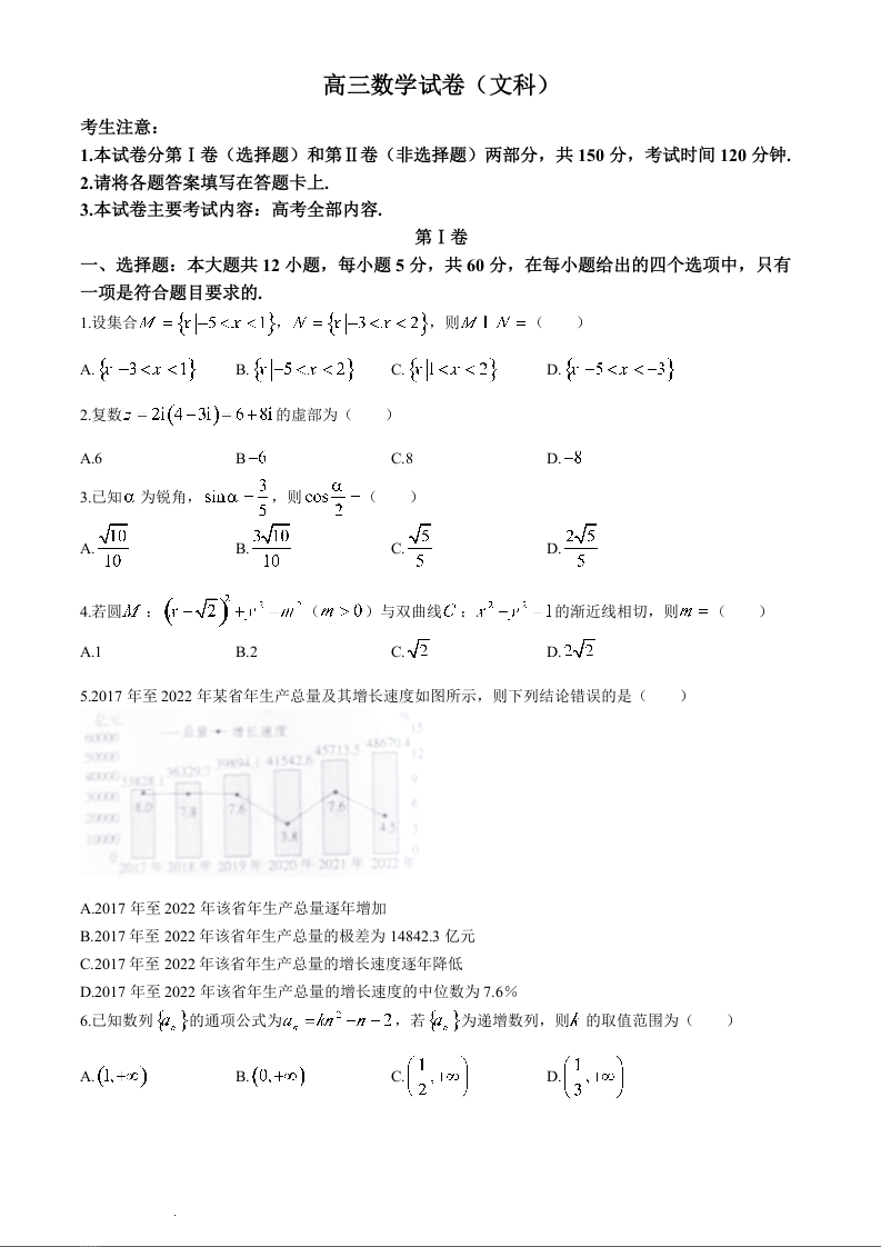 青海省2024届高三下学期金太阳4月联考(同心圆)文科数学+答案