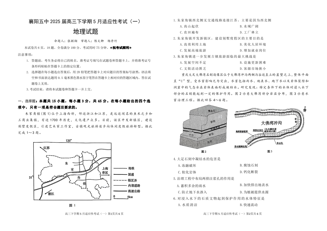 湖北省襄阳五中2024-2025学年下学期5月高三适应性考试(一)地理