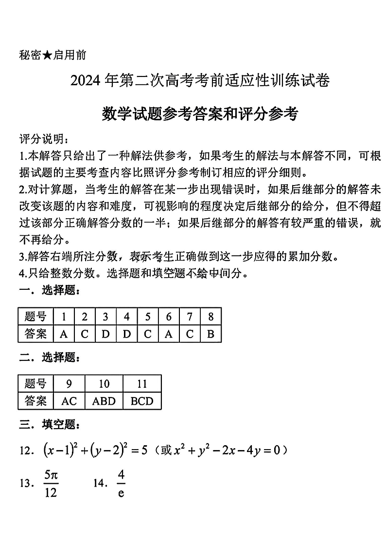山西省临汾市2024届高三下学期考前适应性训练考试(临汾二模)数学答案