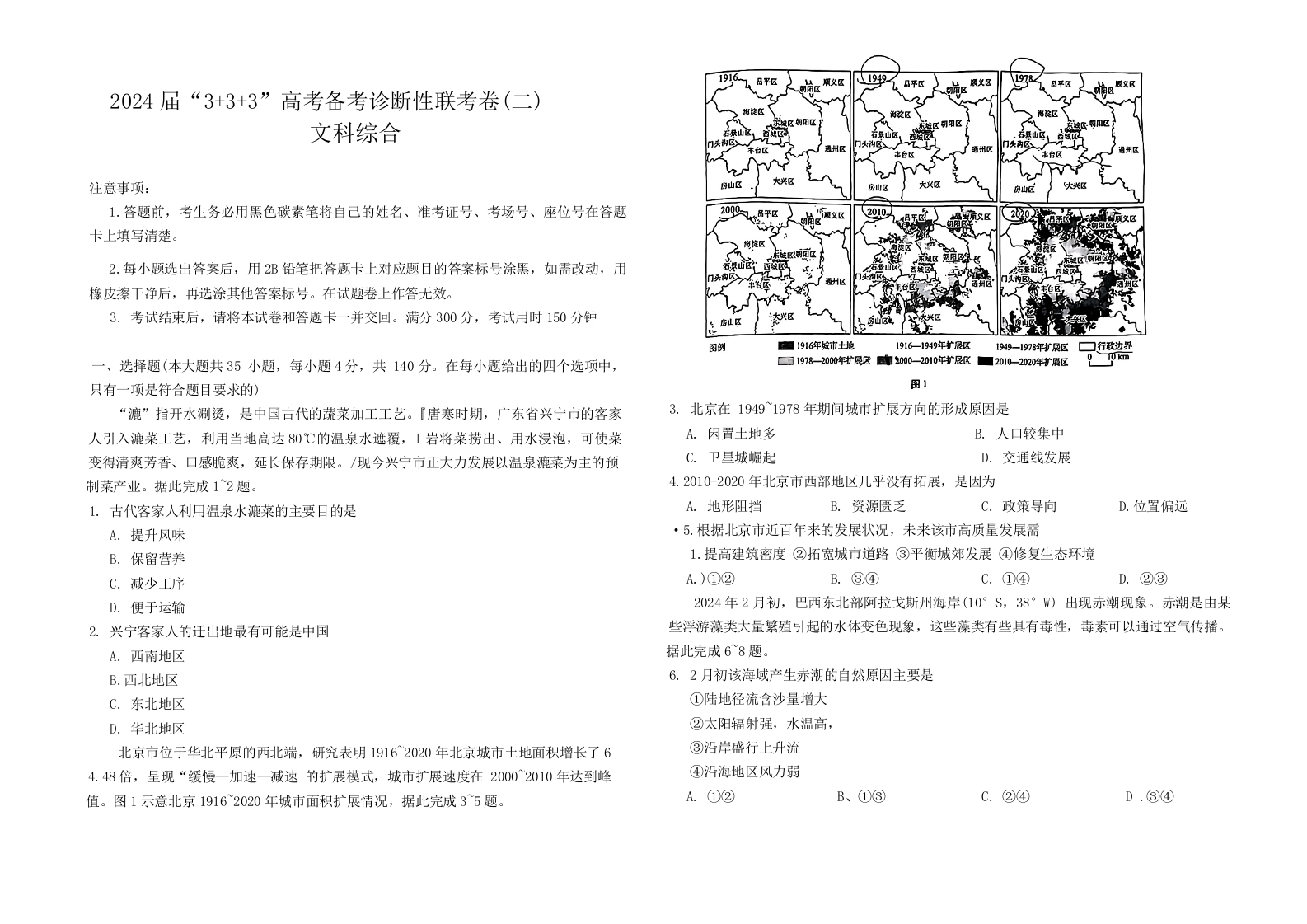 云南省2024届“3+3+3”高考备考诊断性联考卷(二)文综