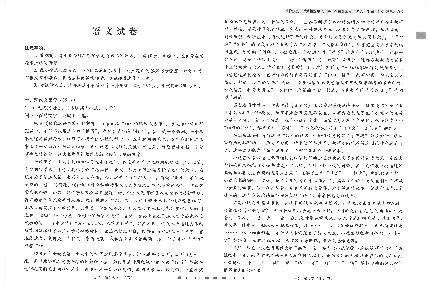 云南师范大学附属中学2024届高三下学期高考适应性月考卷(九)语文
